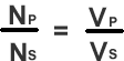 The voltages across the primary and secondary coils of a transformer are related as shown: